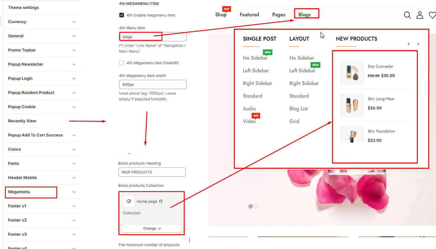 + MailChimp form action URL: if you are using mailchimp for email marketing campain, you need enter action URL to this textbox. You can read about mailchimp action URL at: Mailchimp Signup URL.