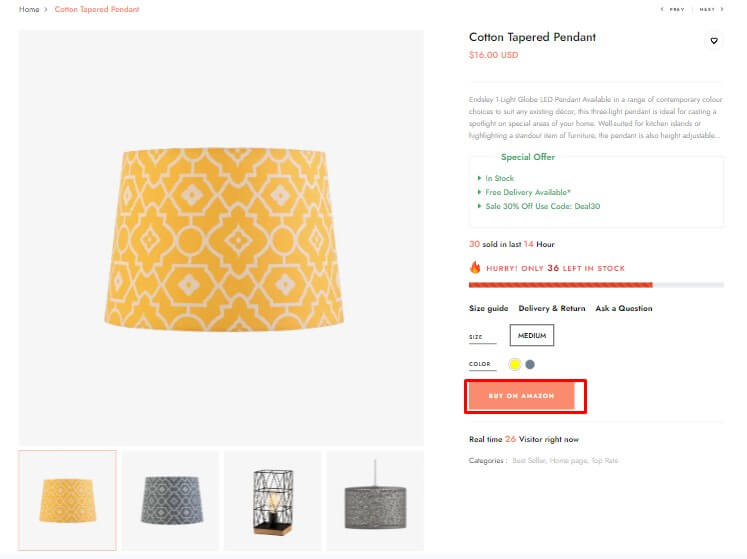 Allow you enter external/Affiliate link, Add cart function will be hidden.